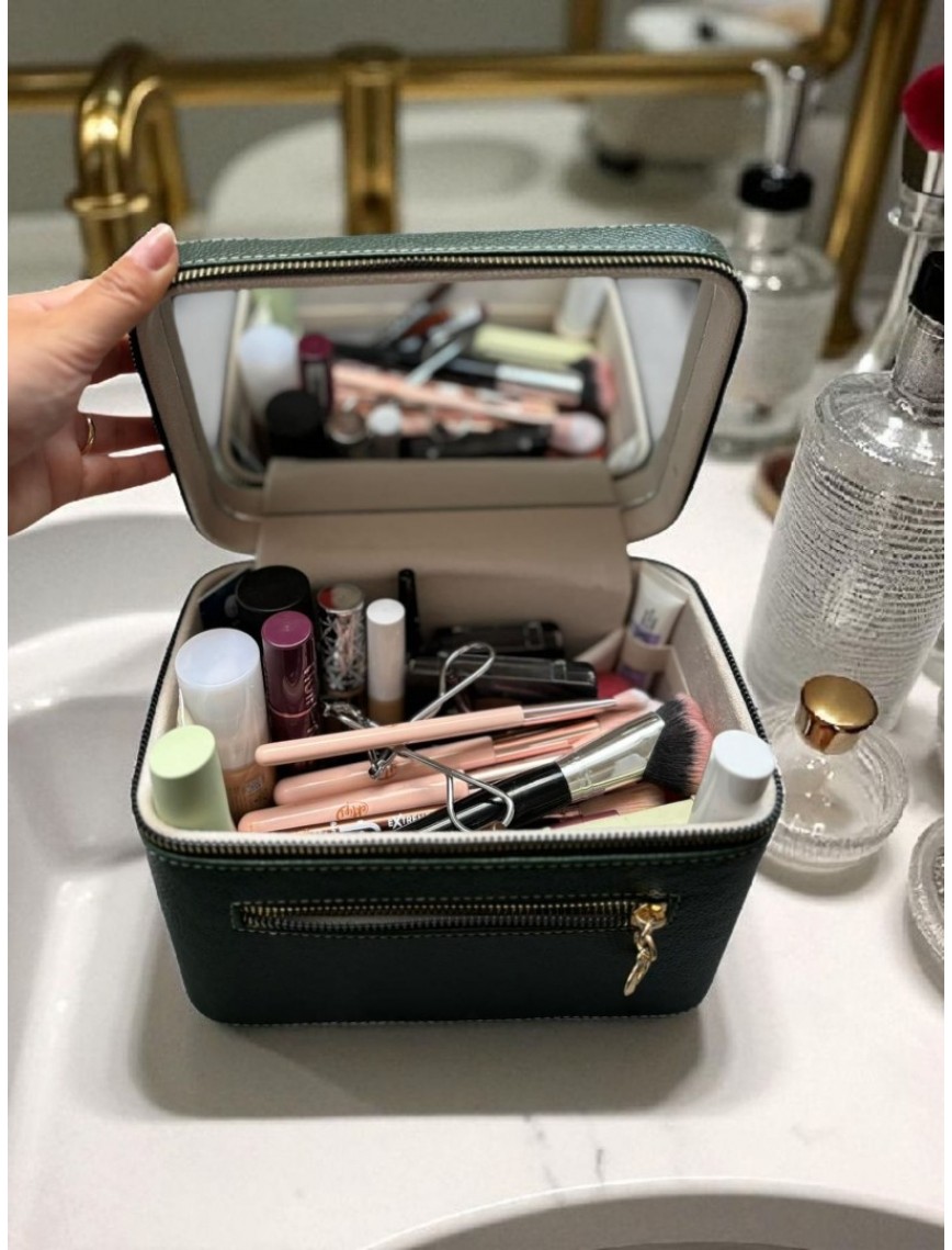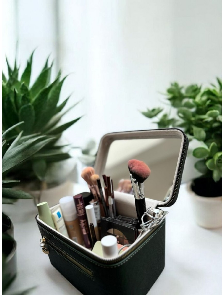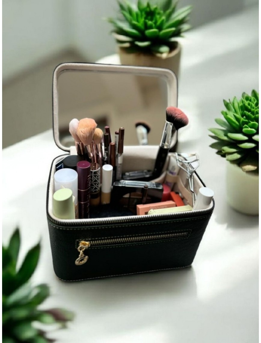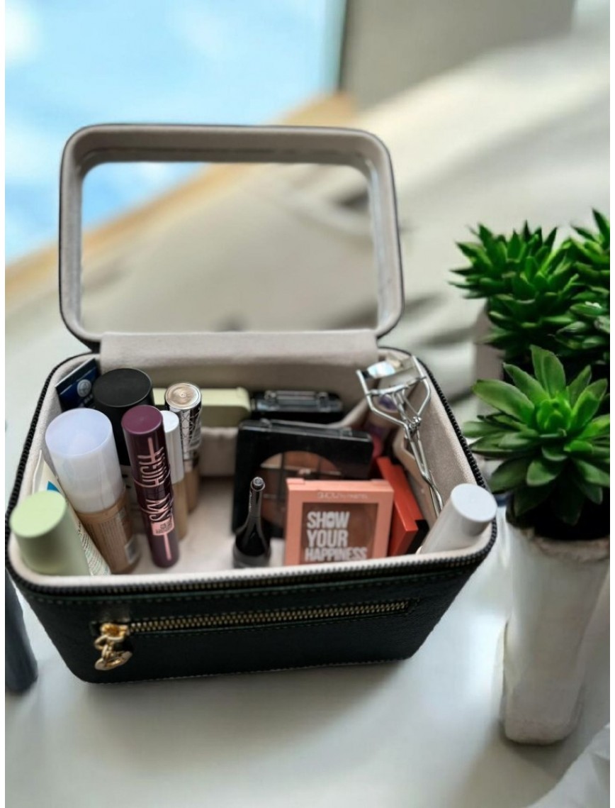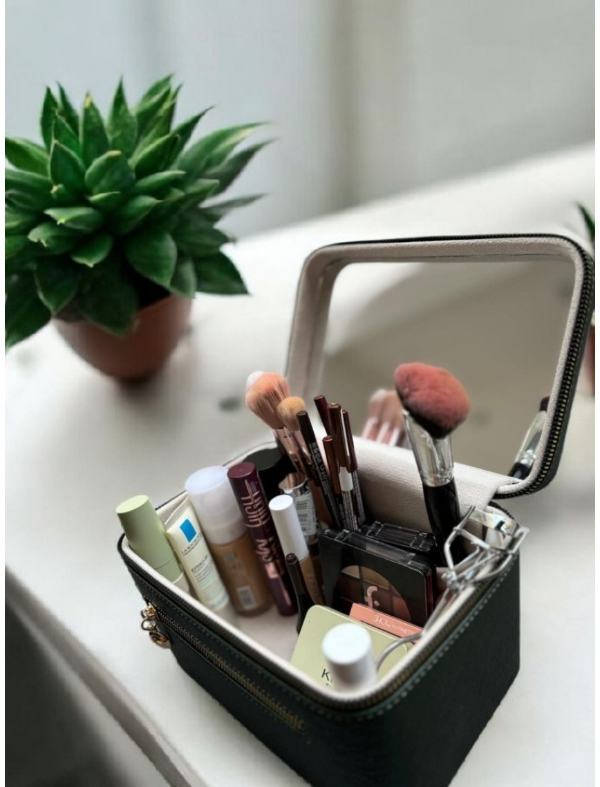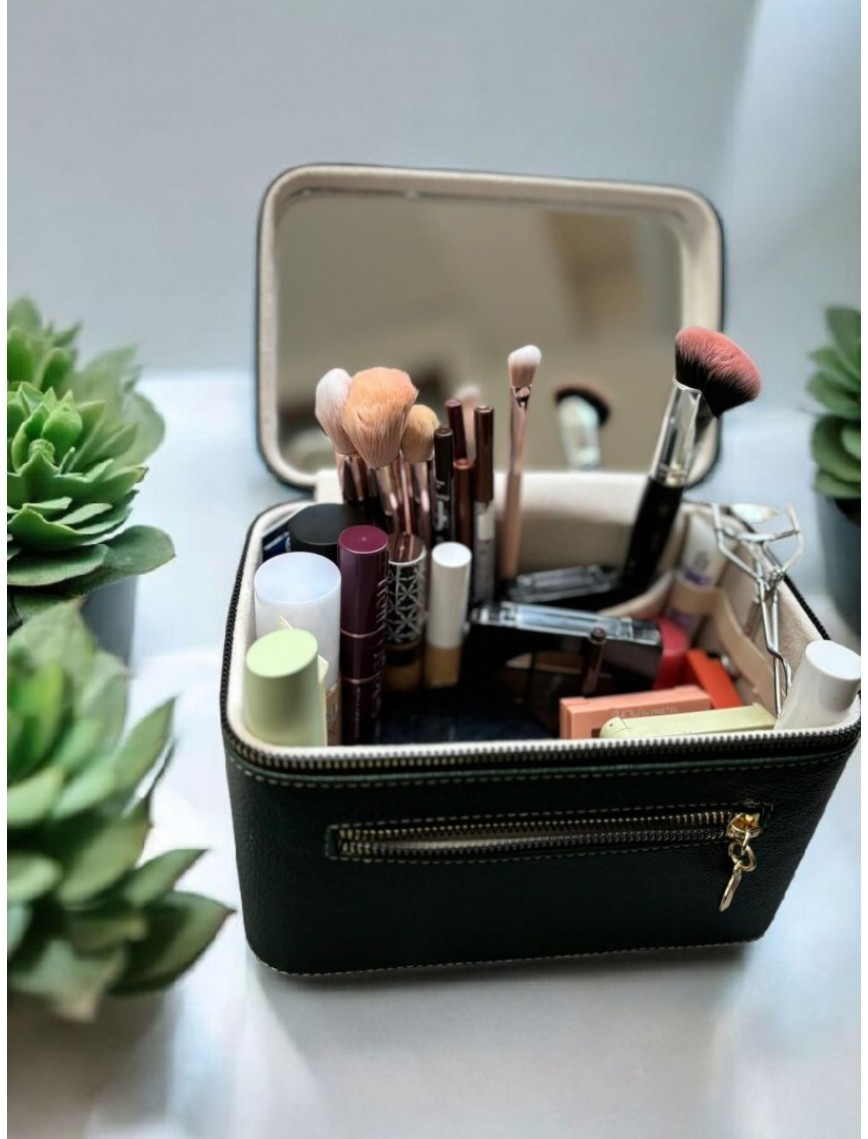 Kozmetik Makyaj Çantası Aynalı Seyahat Seti Makyaj Aksesuarları Düzenleyici HAKİ YEŞİL
